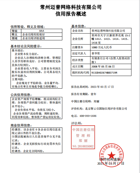 | 信用评价机构:北京智云信国际信用评价有限公司 | |